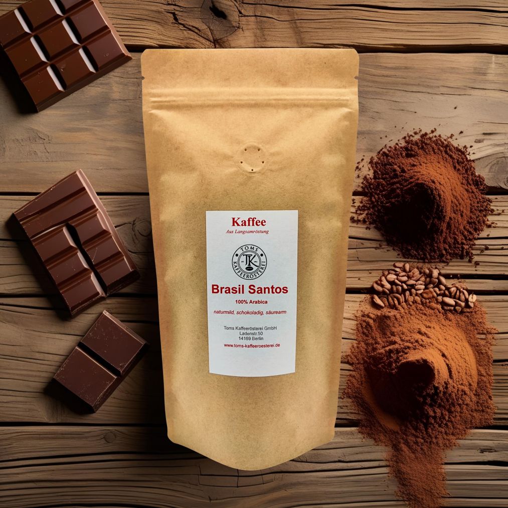 100% Arabica (natural). Milder Kaffee mit Noten von Schokolade und Kakao.