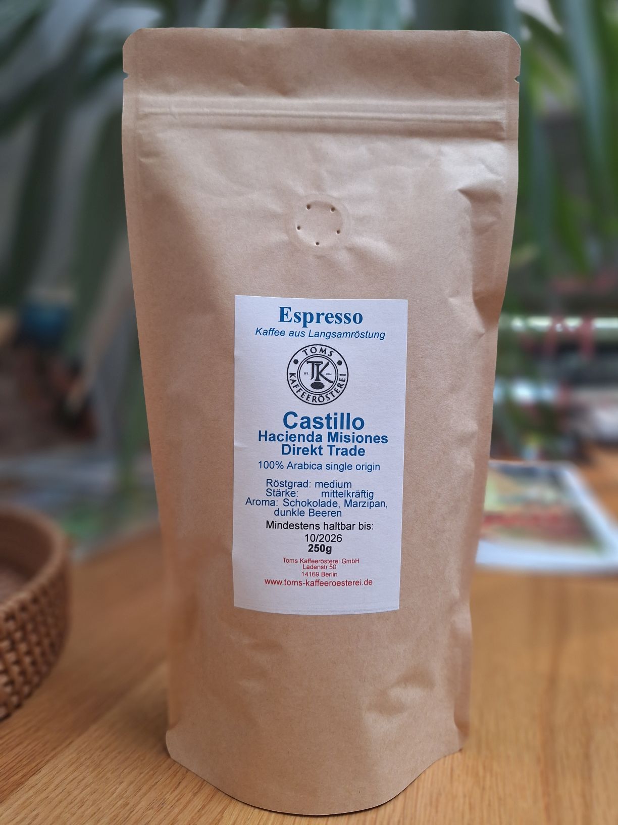 Dieser fruchtig-schokoladige Single-Origin (= Reinsorte) Espresso ist durch seine hellere Röstung und seiner hohen Aromenvielfalt ein echter Gaumenschmaus! Durch die Röstung werdenfruchtig-süße Aromen betont mit Noten von Orangen Pfirsich und roten Kirschen und im Abgang mit Mandelnoten. Durch den direkten Handel mit der Farm Hacienda Misiones in Kolumbien unterstützen Sie ein sozial-ökölogisches Projekt (Schulen Unterkünfte auf der Farm keine Pestizide höheren Lohn der Arbeiter) das hohen Wert auf Nachhaltigkeit und gute Qualität legt